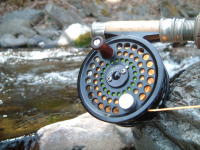 そのわりには釣れない。今日はボウズ覚悟で行こう、そう思っていた次の瞬間、バシャッときれいに出た。大きい淵からの流れ出しの流心だ。ピーコックヒールをアントの形に巻いたパラシュートタイプの毛鉤だ。サイズも小さめで#19(TMCフック102Y)だ。
