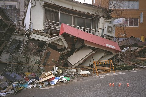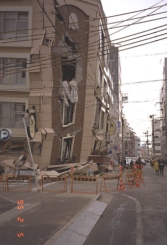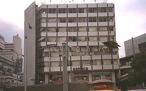 三ノ宮、交通ビル。 ここも4階と5階の被害が大きい。