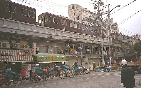 阪急三ノ宮駅東側。撤去を待つ電車が、連結を放たれ放置されていた。