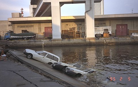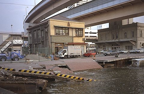 神戸港の殆どの岸壁は何らかの被害を受けたが、使えそうな岸壁では船が活動していた。